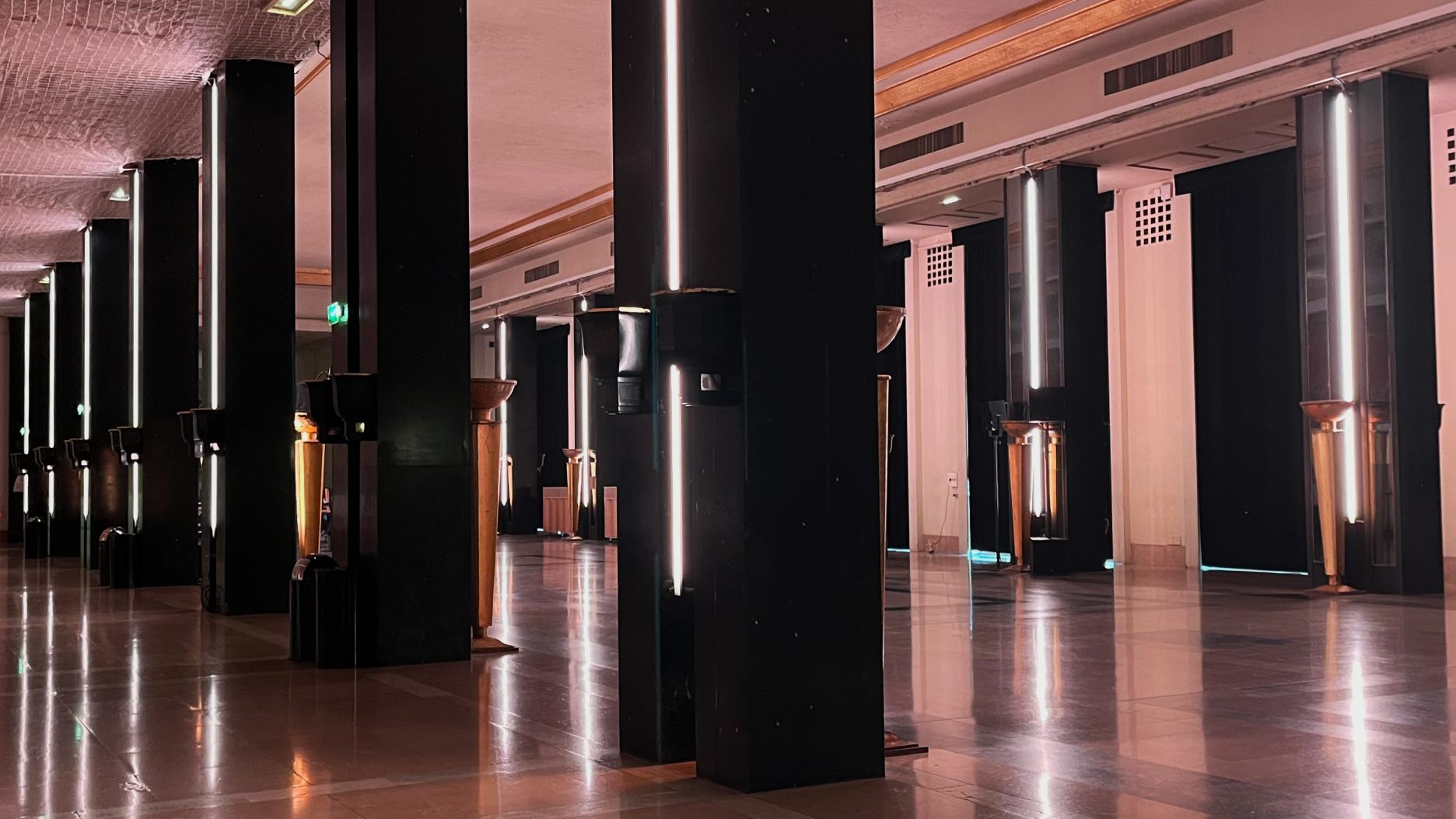 Avec la délicatesse et l’audace qui caractérisent son travail, Yves Godin déploie une écriture lumineuse qui met en valeur le patrimoine Art déco du lieu : colonnes, fresques, volumes et matières se révèlent sous un jour nouveau, magnifiés par une mise en espace sensible et chaude.